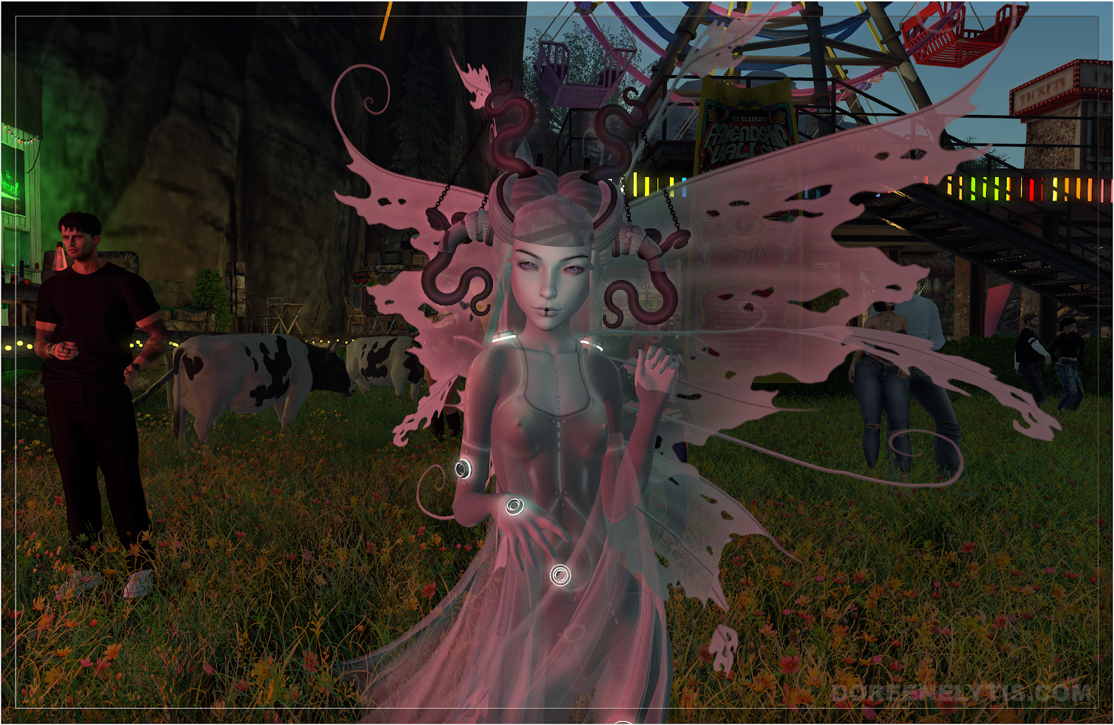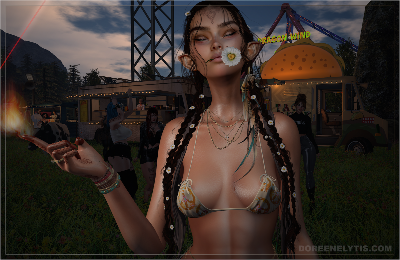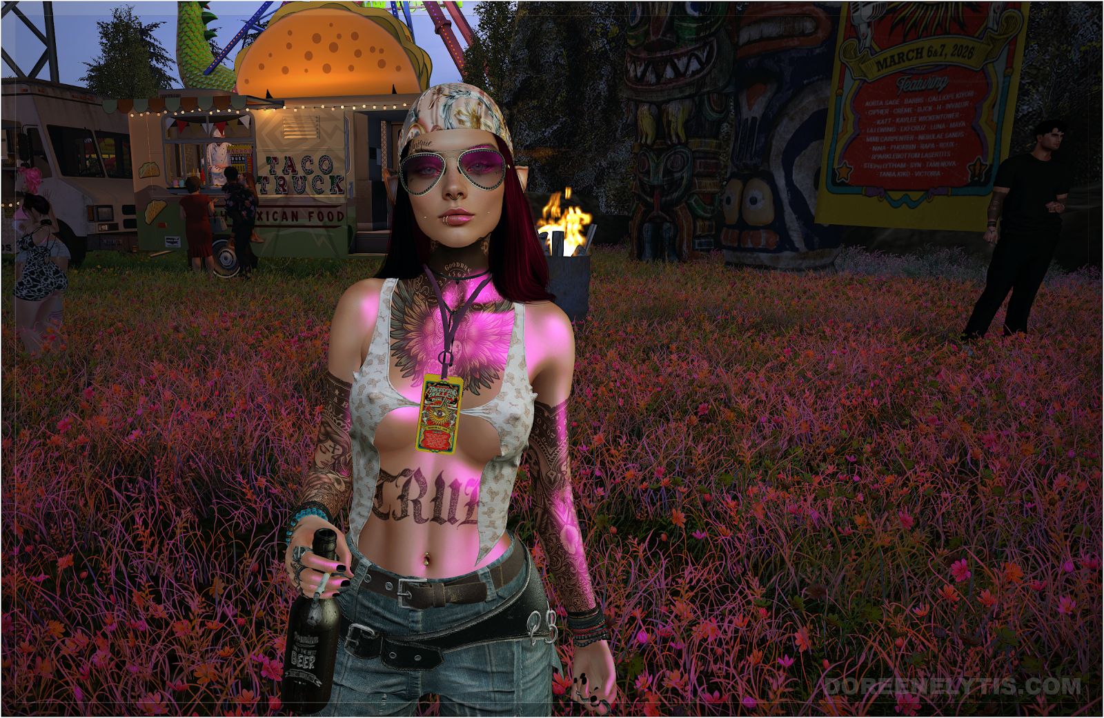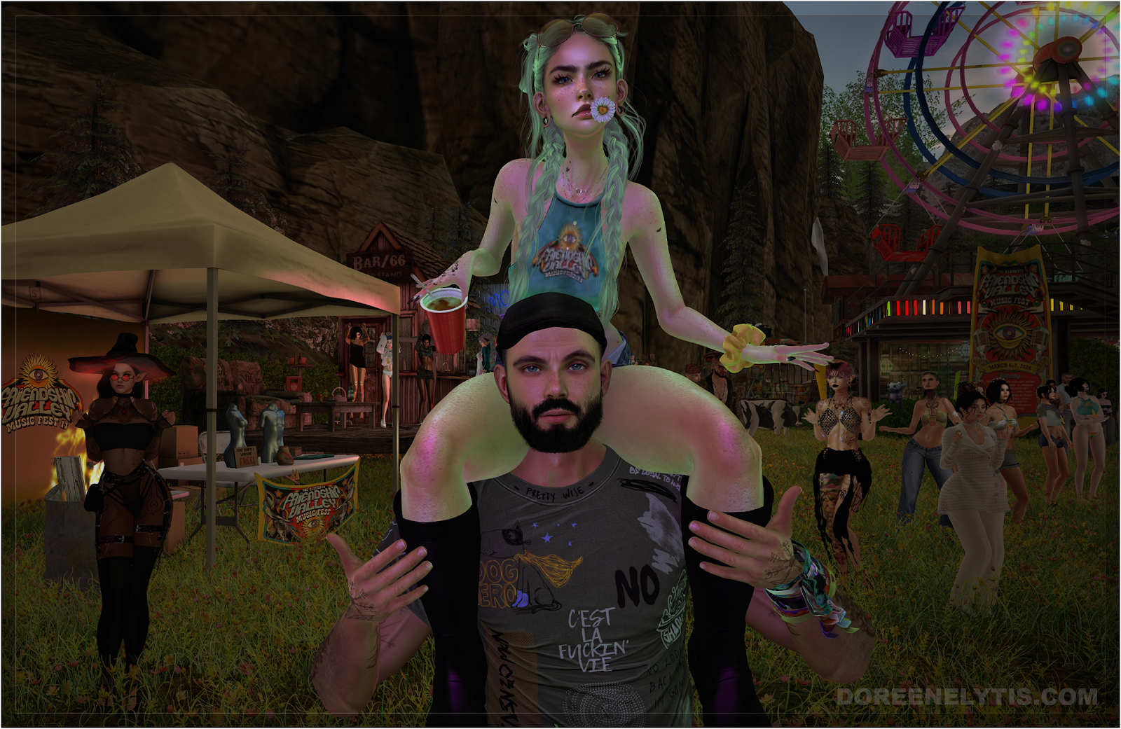 The lineup was perfect for that. From the early sets through the evening crescendo, the DJs kept the valley moving while the crowd flowed through the festival grounds, from the dance floor to the food trucks, from the ferris wheel lights to the quiet corners where conversations happen between songs. Creativity was everywhere; outfits that clearly took planning, presence that looked like they stepped out of fantasy, fashion, or somewhere in between. Friends reuniting in the middle of the field while the stage lights painted the valley in color.